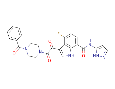 - Name: 3-[2-(4-Benzoyl-piperazin-1-yl)-2-oxo-acetyl]-4-fluoro-1H-indole-7-carboxylic acid (2H-pyrazol-3-yl)-amide