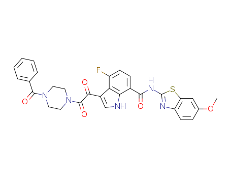 - Name: 3-[2-(4-Benzoyl-piperazin-1-yl)-2-oxo-acetyl]-4-fluoro-1H-indole-7-carboxylic acid (6-methoxy-benzothiazol-2-yl)-amide