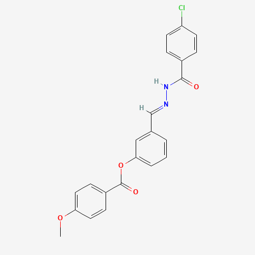 - Synonyms:STK962614;AKOS024290482;3-(2-(4-CHLOROBENZOYL)CARBOHYDRAZONOYL)PHENYL 4-METHOXYBENZOATE;3-[(E)-{2-[(4-chlorophenyl)carbonyl]hydrazinylidene}methyl]phenyl 4-methoxybenzoate