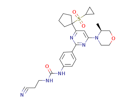 3-(2-cyanoethyl)-1-[4-[4-(1-cyclopropylsulfonylcyclopentyl)-6-[(3S)-3-methylmorpholin-4-yl]pyrimidin-2-yl]phenyl]urea(1101807-54-8)