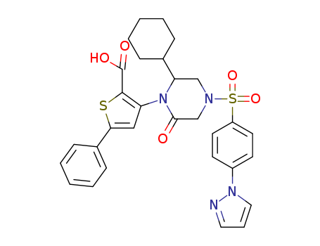 3-[2-cyclohexyl-4-(4-pyrazol-1-ylbenzenesulfonyl)-6-oxopiperazin-1-yl]-5-phenylthiophene-2-carboxylic acid(1356454-40-4)