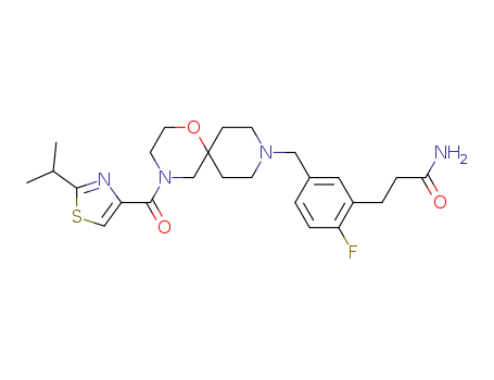 - Synonyms:3-[2-fluoro-5-[[4-(2-isopropylthiazole-4-carbonyl)-1-oxa-4,9-diazaspiro[5.5]undecan-9-yl]methyl]phenyl]propanamide