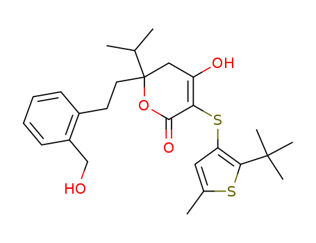 3-(2-tert-Butyl-5-methyl-thiophen-3-ylsulfanyl)-4-hydroxy-6-[2-(2-hydroxymethyl-phenyl)-ethyl]-6-isopropyl-5,6-dihydro-pyran-2-one(261707-40-8)