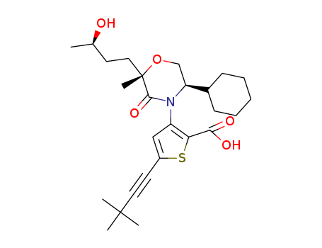 3-[(2S,5R)-5-cyclohexyl-2-((R)-3-hydroxybutyl)-2-methyl-3-oxomorpholin-4-yl]-5-(3,3-dimethylbut-1-ynyl)thiophene-2-carboxylic acid(1356456-73-9)