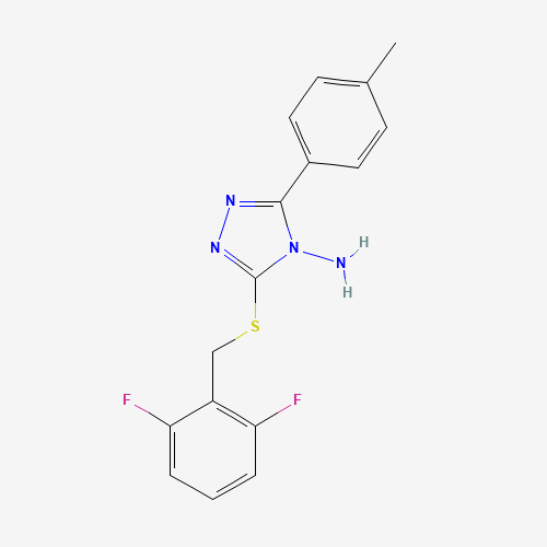 - Synonyms:676582-30-2;3-((2,6-DIFLUOROBENZYL)THIO)-5-(4-METHYLPHENYL)-4H-1,2,4-TRIAZOL-4-YLAMINE;STL228737;AKOS002188123;3-((2,6-Difluorobenzyl)thio)-5-(p-tolyl)-4H-1,2,4-triazol-4-amine;3-[(2,6-difluorobenzyl)sulfanyl]-5-(4-methylphenyl)-4H-1,2,4-triazol-4-amine