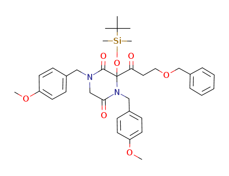 3-(3-Benzyloxy-propionyl)-3-(tert-butyl-dimethyl-silanyloxy)-1,4-bis-(4-methoxy-benzyl)-piperazine-2,5-dione(144581-92-0)