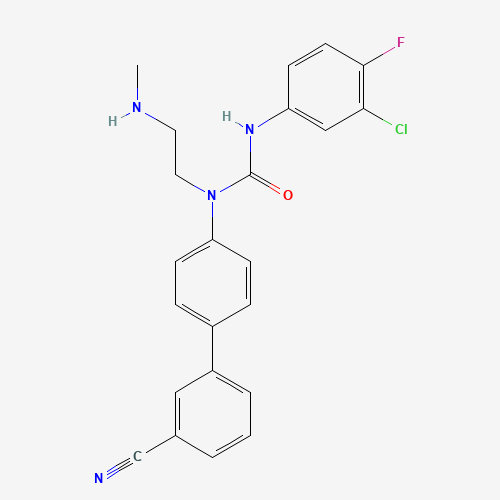 - Synonyms:CHEMBL189611;DTXSID701121640;BDBM50170615;3-(3-Chloro-4-fluoro-phenyl)-1-(3''-cyano-biphenyl-4-yl)-1-(2-methylamino-ethyl)-urea;862653-12-1;N'-(3-Chloro-4-fluorophenyl)-N-(3'-cyano[1,1'-biphenyl]-4-yl)-N-[2-(methylamino)ethyl]urea