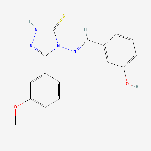 - Synonyms:STL054463;AKOS005707144;AKOS024416254;497920-45-3;3-(((3-Mercapto-5-(3-methoxyphenyl)-4H-1,2,4-triazol-4-yl)imino)methyl)phenol;3-((E)-{[3-(3-methoxyphenyl)-5-sulfanyl-4H-1,2,4-triazol-4-yl]imino}methyl)phenol;4-{[(E)-(3-hydroxyphenyl)methylidene]amino}-5-(3-methoxyphenyl)-2,4-dihydro-3H-1,2,4-triazole-3-thione