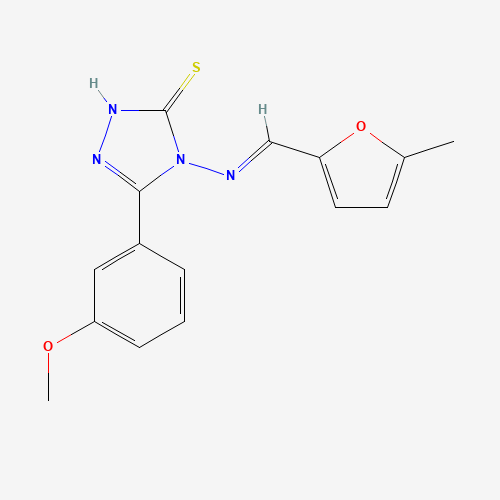 - Synonyms:STK576060;AKOS002179019;AKOS005500801;613248-90-1;5-(3-METHOXYPHENYL)-4-(((5-ME-2-FURYL)METHYLENE)AMINO)-4H-1,2,4-TRIAZOLE-3-THIOL;3-(3-Methoxyphenyl)-4-(((5-methylfuran-2-yl)methylene)amino)-1H-1,2,4-triazole-5(4H)-thione;5-(3-methoxyphenyl)-4-{[(E)-(5-methylfuran-2-yl)methylidene]amino}-2,4-dihydro-3H-1,2,4-triazole-3-thione