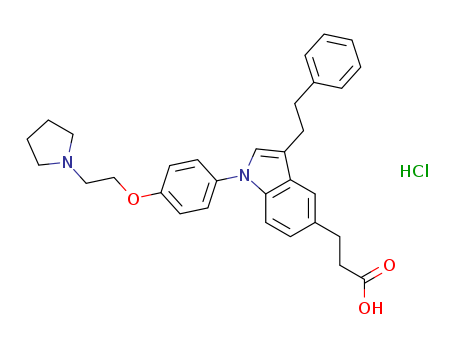 - Synonyms:3-{3-(2-phenylethyl)-1-[4-(2-pyrrolidin-1-ylethoxy)phenyl]-1H-indol-5-yl}propanoic acid hydrochloride
