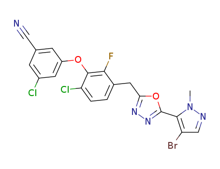 - Name: 3-(3-((5-(4-bromo-1-methyl-1H-pyrazol-5-yl)-1,3,4-oxadiazol-2-yl)methyl)-6-chloro-2-fluorophenoxy)-5-chlorobenzonitrile