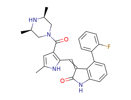 - Name: 3-[3-(cis-3,5-dimethyl-piperazine-1-carbonyl)-5-methyl-1H-pyrrol-2-ylmethylene]-4-(2-fluoro-phenyl)-1,3-dihydro indol-2-one