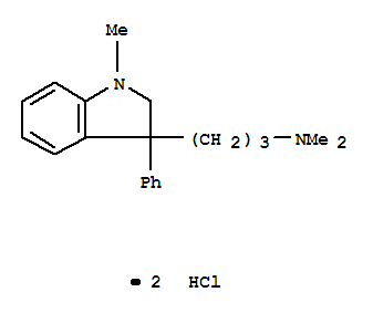 - Synonyms:Indoline,3-[3-(dimethylamino)propyl]-1-methyl-3-phenyl-, dihydrochloride (7CI,8CI)