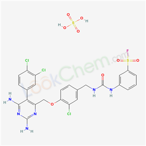 - 25288-33-9/3-{[(3-chloro-4-{[2,6-diamino-5-(3,4-dichlorophenyl)pyrimidin-4-yl]methoxy}benzyl)carbamoyl]amino}benzenesulfonyl fluoride sulfate (1:1)