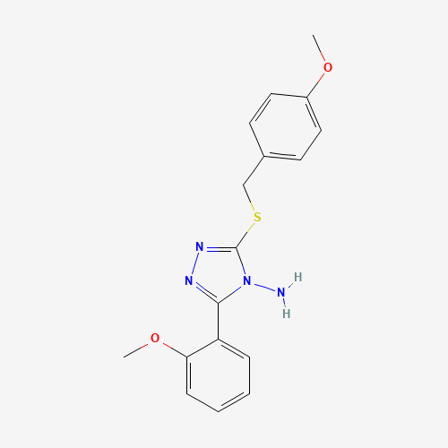 - Synonyms:578719-63-8;3-((4-METHOXYBENZYL)THIO)-5-(2-METHOXYPHENYL)-4H-1,2,4-TRIAZOL-4-YLAMINE;STL298730;AKOS002188786;3-((4-Methoxybenzyl)thio)-5-(2-methoxyphenyl)-4H-1,2,4-triazol-4-amine;3-[(4-methoxybenzyl)sulfanyl]-5-(2-methoxyphenyl)-4H-1,2,4-triazol-4-amine