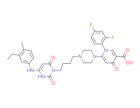 3-{4-[1-(1-{2,4-difluorophenyl}-3-carboxy-4-oxo-6-pyridyl)-4-piperazinyl]butyl}-6-(3-ethyl-4-methylanilino)uracil(479069-13-1)