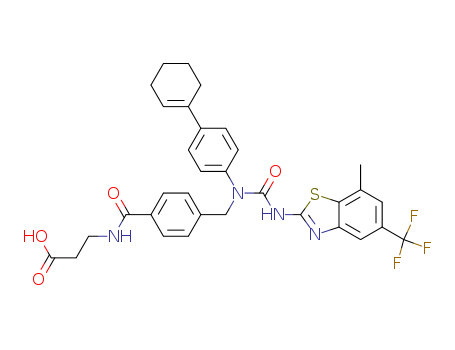 - Name: 3-{4-[1-(4-cyclohex-1-enylphenyl)-3-(5-trifluoromethyl-7-methylbenzothiazol-2-yl)ureidomethyl]benzoylamino}propionic acid