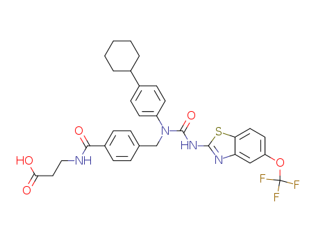 - Name: 3-{4-[1-(4-cyclohexylphenyl)-3-(5-trifluoromethoxybenzothiazol-2-yl)ureidomethyl]benzoylamino}propionic acid
