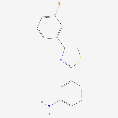 - Synonyms:886496-22-6;3-(4-(3-Bromophenyl)thiazol-2-yl)aniline;3-[4-(3-Bromo-phenyl)-thiazol-2-yl]-phenylamine;DTXSID901258651;AKOS009865975;SB83358;3-[4-(3-Bromophenyl)-2-thiazolyl]benzenamine;3-[4-(3-bromophenyl)thiazol-2-yl]phenylamine