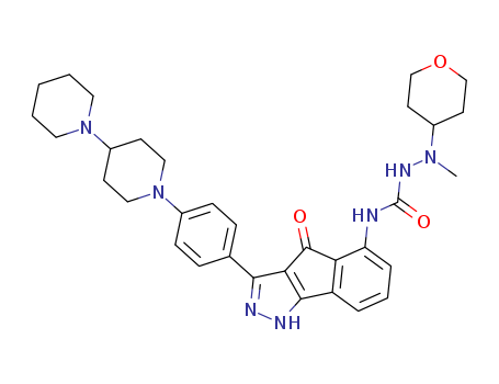 3-(4-(4-piperidinopiperidino)phenyl)-5-((N-methyl-N-(4-tetrahydropyranyl)amino)carbamoylamino)-indeno[1,2-c]pyrazol-4-one(435337-66-9)