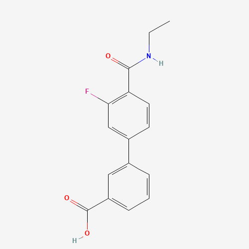 - Synonyms:1261983-37-2;3-[4-(ETHYLCARBAMOYL)-3-FLUOROPHENYL]BENZOIC ACID;DTXSID80683390;MFCD18312724;4'-(Ethylcarbamoyl)-3'-fluoro[1,1'-biphenyl]-3-carboxylic acid