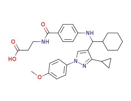 - Name: 3-({[4-({cyclohexyl[3-cyclopropyl-1-(4-methoxyphenyl)-1H-pyrazol-4-yl]methyl}amino)phenyl]carbonyl}amino)propanoic acid
