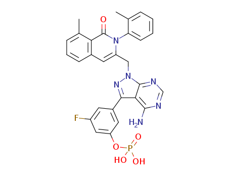 - Name: 3-(4-amino-1-((8-methyl-1-oxo-2-o-tolyl-1,2-dihydroisoquinolin-3-yl)methyl)-1H-pyrazolo[3,4-d]pyrimidin-3-yl)-5-fluorophenyl dihydrogen phosphate