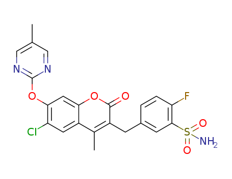 - Name: 3-(4-fluoro-3-aminosulfonylbenzyl)-4-methyl-6-chloro-7-(p-methylpyrimidin-2-yl oxy)-2-oxo-2H-1-benzopyrane