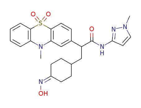 - Synonyms:3-(4-hydroxyiminocyclohexyl)-2-(10-methyl-5,5-dioxo-5,10-dihydrophenothiazin-2-yl)-N-(1-methyl-1H-pyrazol-3-yl)propionamide