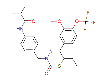 - Name: 3-(4-isobutyrylaminobenzyl)-5-(3-methoxy-4-trifluoromethoxyphenyl)-6-ethyl-3,6-dihydro-1,3,4-thiadiazin-2-one