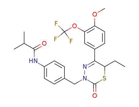 - Name: 3-(4-isobutyrylaminobenzyl)-5-(3-trifluoromethoxy-4-methoxyphenyl)-6-ethyl-3,6-dihydro-1,3,4-thiadiazin-2-one
