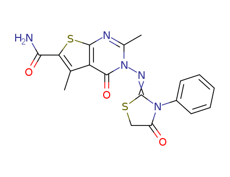 3-(4-oxo-3-phenylthiazolidin-2-ylideneamino)-2,5-dimethyl-4-oxo-3,4-dihydrothieno[2,3-d]pyrimidine-6-carboxamide(1415694-37-9)