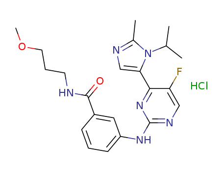 - Synonyms:3-{[5-Fluoro-4-(1-isopropyl-2-methyl-1H-imidazol-5-yl)pyrimidin-2-yl]amino}-N-(3-methoxypropyl)benzamide hydrochloride