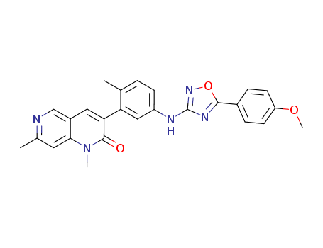 - 1185280-67-4/1,7-dimethyl-3-(2-methyl-5-(5-phenyl-1,3,4-oxadiazol-2-ylamino)phenyl)-1,6-naphthyridin-2(1H)-one