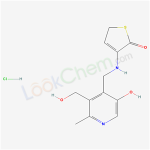 - Synonyms:2(5H)-Thiophenone,3-(((5-hydroxy-3-(hydroxymethyl)-2-methyl-4-pyridinyl)methyl)amino)-,monohydrochloride;Pyridoxal homocysteine thiolactone enamine hydrochloride;4-[[5-hydroxy-3-(hydroxymethyl)-2-methylpyridin-4-yl]methylamino]-2H-thiophen-5-one hydrochloride;