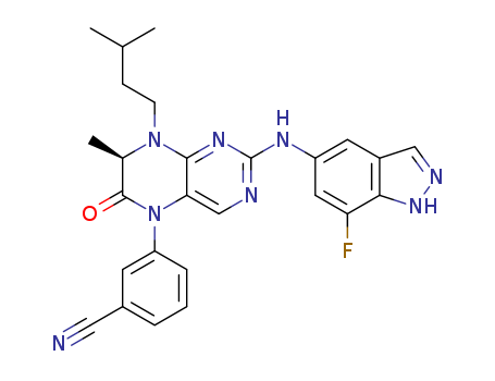 - Name: 3-[(7R)-2-[(7-fluoro-1H-indazol-5-yl)amino]-7-methyl-8-(3-methylbutyl)-6-oxo-7,8-dihydropteridin-5(6H)-yl]benzonitrile