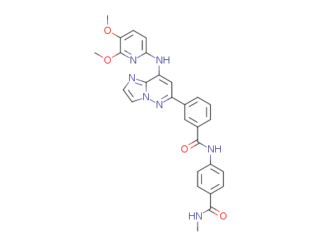 - Synonyms:3-(8-(5,6-dimethoxypyridin-2-ylamino)imidazo[1,2-b]pyridazin-6-yl)-N-(4-(methylcarbamoyl)phenyl)benzamide