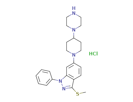 3-(Methylthio)-1-phenyl-6-(4-(piperazin-1-yl)piperidin-1-yl)-1H-indazole hydrochloride(1345404-19-4)