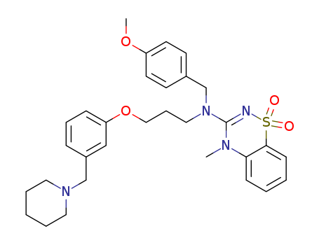 - Synonyms:3-[N-[3-[3-(piperidinomethyl)phenoxy]propyl]-4'-methoxybenzylamino]-4-methyl-1,2,4-benzothiadiazine-1,1-dioxide