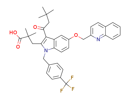 - Name: 3-[N-(4-triflouromethylbenzyl)-3-(3,3-dimethyl-1-oxo-1-butyl)-5-(quinolin-2-yl-methoxy)indol-2-yl]-2,2-dimethylpropanoic acid