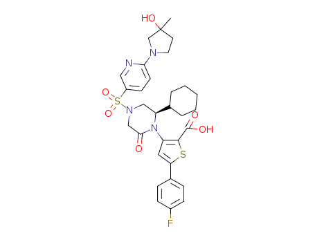 3-{(R)-2-cyclohexyl-4-[6-(3-hydroxy-3-methylpyrrolidin-1-yl)pyridine-3-sulfonyl]-6-oxopiperazin-1-yl}-5-(4-fluorophenyl)thiophene-2-carboxylic acid(1356456-25-1)