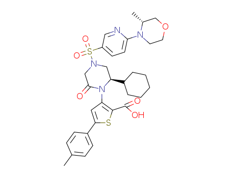 - 1356455-35-0/3-{(R)-2-cyclohexyl-4-[6-((R)-3-methylmorpholin-4-yl)pyridine-3-sulfonyl]-6-oxopiperazin-1-yl}-5-p-tolylthiophene-2-carboxylic acid
