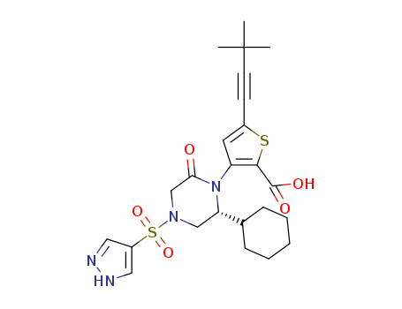 - Name: 3-[(R)-2-cyclohexyl-6-oxo-4-(1H-pyrazole-4-sulfonyl)piperazin-1-yl]-5-(3,3-dimethylbut-1-ynyl)thiophene-2-carboxylic acid