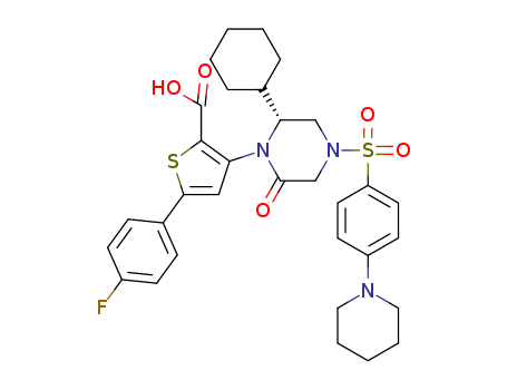 - Name: 3-[(R)-2-cyclohexyl-6-oxo-4-(4-piperidin-1-ylbenzenesulfonyl)piperazin-1-yl]-5-(4-fluorophenyl)thiophene-2-carboxylic acid