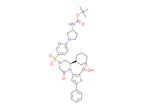 3-{(R)-4-[6-((R)-3-tert-butoxycarbonylaminopyrrolidin-1-yl)pyridine-3-sulfonyl]-2-cyclohexyl-6-oxopiperazin-1-yl}-5-phenylthiophene-2-carboxylic acid(1356454-85-7)