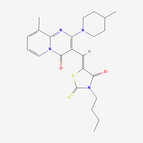- Name: 3-[(Z)-(3-butyl-4-oxo-2-thioxo-1,3-thiazolidin-5-ylidene)methyl]-9-methyl-2-(4-methylpiperidin-1-yl)-4H-pyrido[1,2-a]pyrimidin-4-one