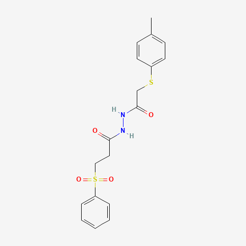 3-(benzenesulfonyl)-N'-[2-(4-methylphenyl)sulfanylacetyl]propanehydrazide