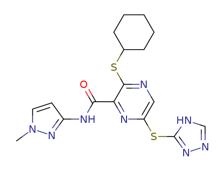 3-(cyclohexylsulfanyl)-N-(1-methyl-1H-pyrazol-3-yl)-6-(4H-1,2,4-triazol-3-ylsulfanyl)pyrazine-2-carboxamide(1093382-51-4)
