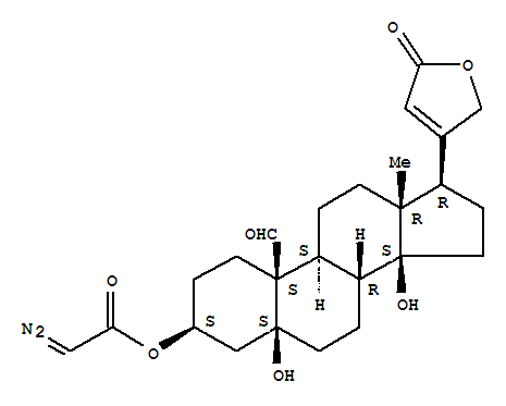 - Synonyms:5b-Card-20(22)-enolide, 3b,5,14-trihydroxy-19-oxo-,3-(diazoacetate) (8CI); Acetic acid, diazo-, 3-ester with 3b,5,14-trihydroxy-19-oxo-5b-card-20(22)-enolide; NSC 96740