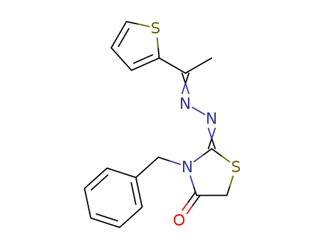 - Synonyms:3-benzyl-2-(2-(1-(thiophen-2-yl)ethylidene)hydrazono)thiazolidin-4-one